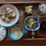 今日の朝ごはんです。 メニューは、蒸し魚のオイルかけ・小松菜とえのきの蒸し煮 肉豆腐・里芋の明太和え ...